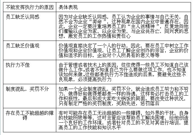 在企業中,往往存在基層員工不能發揮執行力,或者執行不到位的現象,原因有很多,其中主要的原因如表21-2所示。