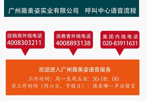 薇美姿目前存在經(jīng)銷商和消費者兩條400外線和一條內(nèi)線,呼叫中心系統(tǒng)的建立規(guī)避了資源整合不齊全,管理難等問題,自動靈活的幫助企業(yè)處理大量和各種各樣的電話呼入和呼出服務(wù)等運營活動,將整合企業(yè)內(nèi)分屬各職能部門統(tǒng)一為客戶提供的優(yōu)質(zhì)的服務(wù)。