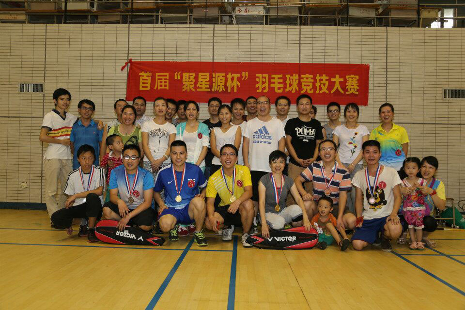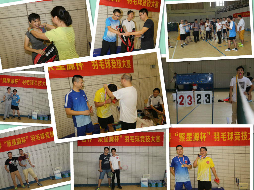 在整個賽程中,我們的同事是那么恪敬職守,一絲不茍;選手們是那么敢于扣殺,勇于拼搏;我們的啦啦隊是那么團結一致,充滿活力。在整個比賽過程中,時時有驚險,處處有驚心,但也充滿著歡聲笑語,不時出現一匹匹黑馬,看得大家鼓掌歡呼。聚星源首屆羽毛球賽在大家的歡呼聲中落下帷幕!