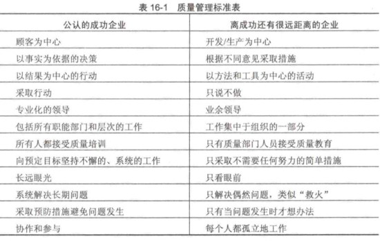表16-1為質量管理標準表。